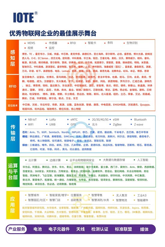 3、完整產(chǎn)業(yè)鏈,采購更容易。涵蓋物聯(lián)網(wǎng)感知層、網(wǎng)絡傳輸層、運算與平臺層、應用層。還有以應用集成導向的同期展,聚焦:5G、新基建、智慧城市、工業(yè)物聯(lián)網(wǎng)、等物聯(lián)網(wǎng)核心應用,一站式展示物聯(lián)網(wǎng)產(chǎn)業(yè)最新技術(shù)、產(chǎn)品、方案、企業(yè)。