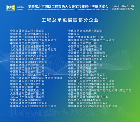 EPC2024將于2024年11月14-16日在北京.北人亦創(chuàng)國際會展中心舉辦,本屆展會以“綠色低碳、高效融合”為主題。展覽涉及綠色建筑材料與裝飾材料、電梯、綠色電力能源、管材管件、防水材料、工程施工機(jī)械設(shè)備、裝配式建筑與集成房屋、模板及腳手架、工程物流、EPC工程總承包、設(shè)計咨詢、專業(yè)承/分包、采購與供應(yīng)鏈平臺、供應(yīng)鏈金融服務(wù)、建筑木材與木制品、石材、鋼材鋼筋等,涵蓋工程產(chǎn)業(yè)鏈全鏈。