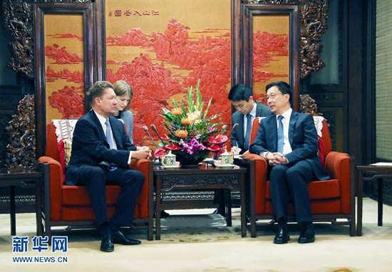 韓正會見俄羅斯天然氣工業(yè)公司總裁米勒