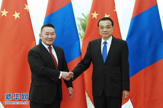 李克強(qiáng)會(huì)見蒙古國(guó)總統(tǒng)巴特圖勒嘎