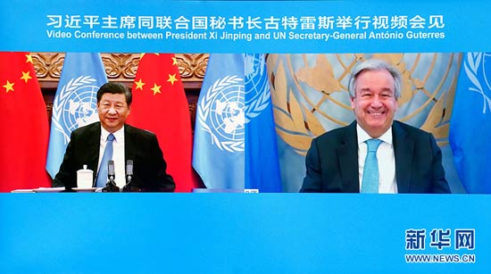 9月23日晚,國(guó)家主席習(xí)近平在北京以視頻方式會(huì)見(jiàn)聯(lián)合國(guó)秘書長(zhǎng)古特雷斯。 新華社記者 劉衛(wèi)兵 攝