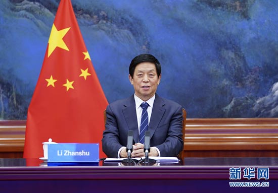 6月22日,全國人大常委會(huì)委員長(zhǎng)栗戰(zhàn)書在北京人民大會(huì)堂以視頻方式同塞爾維亞國民議會(huì)議長(zhǎng)達(dá)契奇舉行會(huì)談。新華社記者 張領(lǐng) 攝