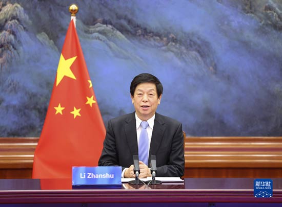 1月20日,全國(guó)人大常委會(huì)委員長(zhǎng)栗戰(zhàn)書(shū)在北京人民大會(huì)堂以視頻方式同薩爾瓦多議長(zhǎng)卡斯特羅舉行會(huì)談。新華社記者 龐興雷 攝