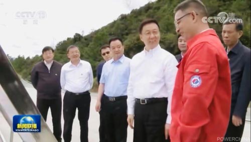▲韓正到中國(guó)電建承建的尼洋河砂石加工場(chǎng)了解綠色砂石生產(chǎn)及節(jié)能環(huán)保工藝