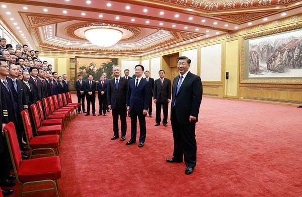 上午10時30分許,習(xí)近平等來到人民大會堂東大廳,全場響起熱烈掌聲。習(xí)近平同大家親切交流并合影留念。習(xí)近平對大家表示,你們是國家棟梁、英雄功臣。在你們努力下,大飛機(jī)項(xiàng)目取得了可喜成就。要聚焦關(guān)鍵核心技術(shù),繼續(xù)合力攻關(guān)。要把安全可靠性放在第一位,消除一切安全隱患。大飛機(jī)事業(yè)一定要辦好!