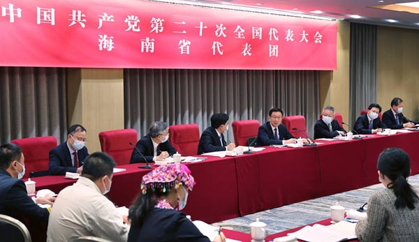 10月17日,韓正同志參加他所在的黨的二十大海南代表團討論。新華社記者 姚大偉 攝