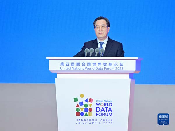 4月24日,第四屆聯(lián)合國(guó)世界數(shù)據(jù)論壇在浙江杭州開(kāi)幕。中共中央政治局常委、國(guó)務(wù)院副總理丁薛祥出席開(kāi)幕式,宣讀習(xí)近平主席賀信并致辭。
