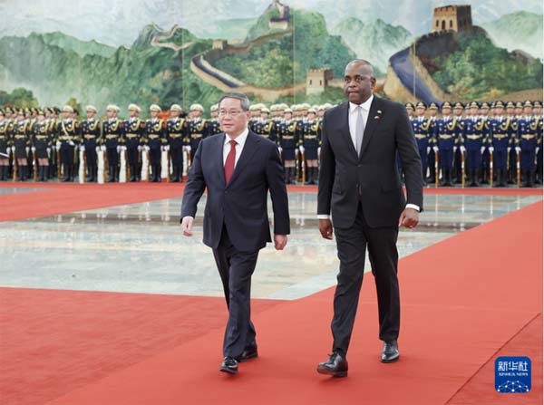 3月25日上午,國務(wù)院總理李強在北京人民大會堂同來華進行正式訪問的多米尼克總理斯凱里特舉行會談。這是會談前,李強在人民大會堂北大廳為斯凱里特舉行歡迎儀式。