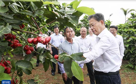 3月29日至30日,中共中央政治局常委、全國(guó)人大常委會(huì)委員長(zhǎng)趙樂(lè)際在海南調(diào)研。這是3月29日,趙樂(lè)際在定安縣黃竹鎮(zhèn)白塘村,察看蓮霧果園種植情況。