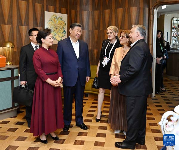 當?shù)貢r間5月10日中午,國家主席習近平和夫人彭麗媛在布達佩斯應邀出席匈牙利總理歐爾班和夫人舉行的餞行活動。