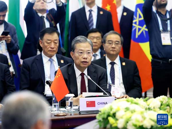 7月11日至12日,第十屆金磚國家議會論壇在俄羅斯圣彼得堡舉行。中國全國人大常委會委員長趙樂際出席論壇并發(fā)表講話。這是11日,趙樂際出席論壇全體會議并發(fā)表講話。