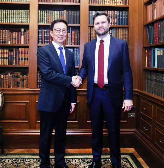 當(dāng)?shù)貢r間1月20日,習(xí)近平主席特別代表、國家副主席韓正應(yīng)邀在華盛頓出席美國總統(tǒng)特朗普就職典禮。在美期間,韓正同當(dāng)選副總統(tǒng)萬斯舉行會見。