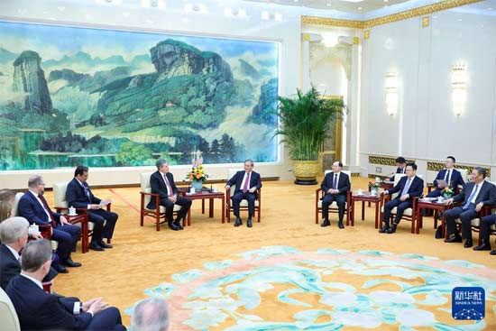 3月23日下午,國(guó)務(wù)院總理李強(qiáng)在北京人民大會(huì)堂會(huì)見來華出席中國(guó)發(fā)展高層論壇2025年年會(huì)的美國(guó)聯(lián)邦參議員戴安斯及部分美國(guó)企業(yè)界人士。
