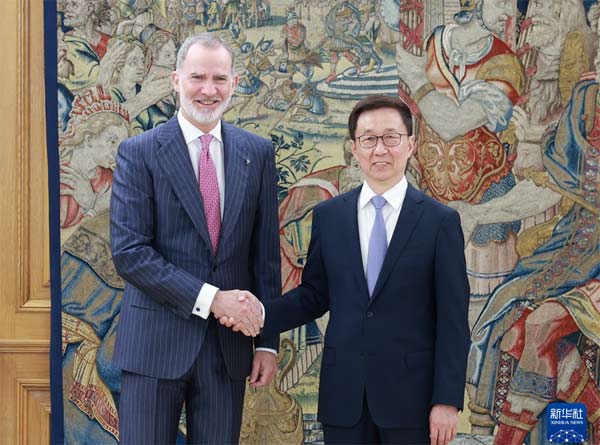 當(dāng)?shù)貢r間6月10日至12日,應(yīng)西班牙政府邀請,國家副主席韓正訪問西班牙。這是6月12日,韓正在馬德里會見西班牙國王費利佩六世。