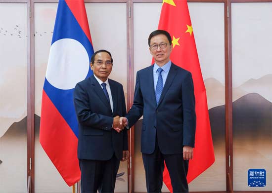 9月16日,國(guó)家副主席韓正在廣西南寧會(huì)見來(lái)華出席第22屆中國(guó)-東盟博覽會(huì)暨中國(guó)-東盟商務(wù)與投資峰會(huì)的老撾國(guó)家副主席本通。